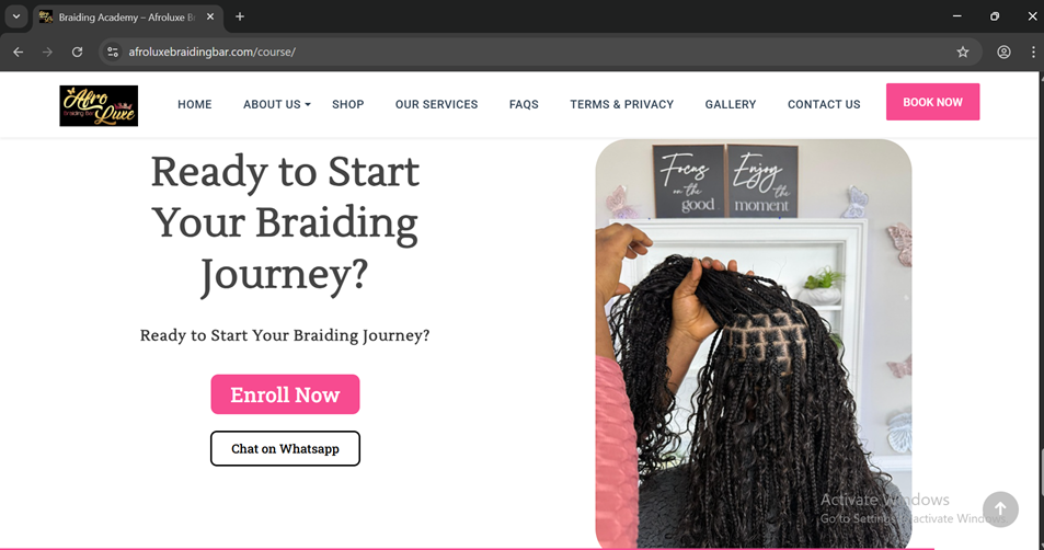 Afroluxe Braiding Bar, a premium salon, decided to expand into education by launching a professional braiding academy. They needed a digital home for their courses that could handle high traffic, explain their curriculum clearly, and most importantly, process student registrations and payments automatically.
