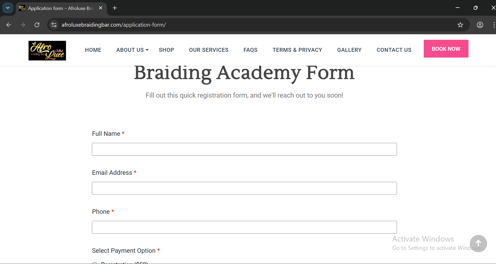 The Challenge: Afroluxe wanted to move from manual, phone-call registrations to a 24/7 automated online system for their braiding academy.